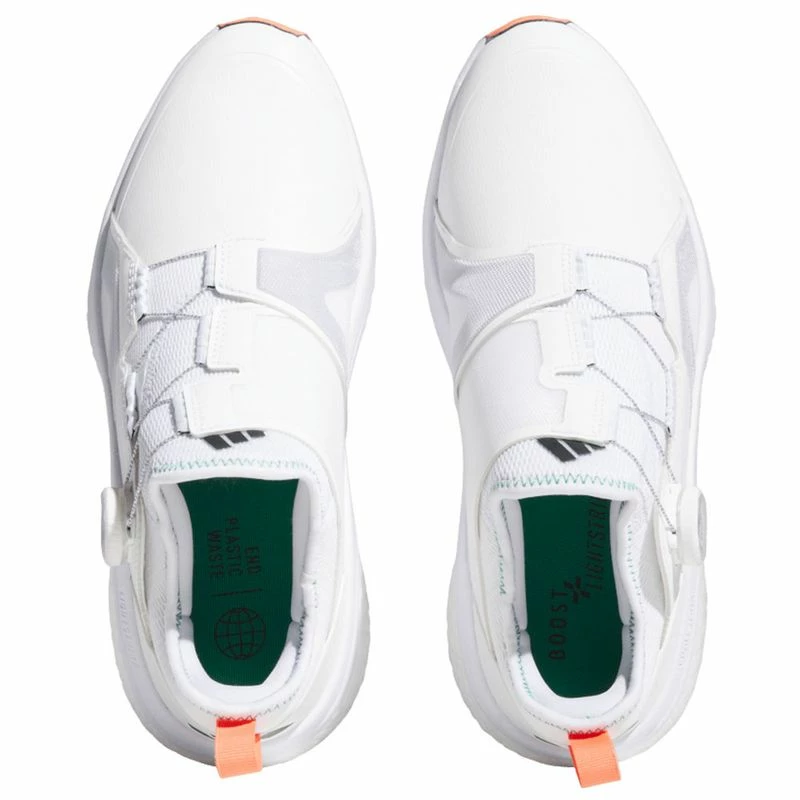 These adidas golf shoes are made with precision and comfort in mind. Built with a responsive Lightstrike midsole and dropped-in BOOST heel, they offer endless energy return for all-day play. A micro-adjustable BOA® Fit System lets you find the perfect fit with the turn of a dial, so you’re always locked in before those key shots. The waterproof upper material helps your feet stay dry in any condition while the spikeless Gripmore® outsole provides easy, comfortable traction.