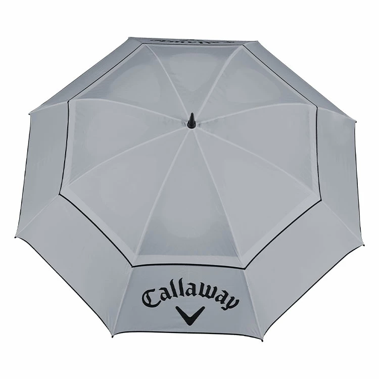 | Callaway Shield 64 Inch Golf Umbrella 64 Inch Diameter With Robust Frame Wind and rain ready, this double canopy, robust frame design shields you from any elements you may face – on or off the course. – Large 64″ size diameter – Robust frame to withstand extreme weather – Fiberglass shaft – Ergonomic, non-slip moulded handle – Manual opening – Callaway Tour branding |