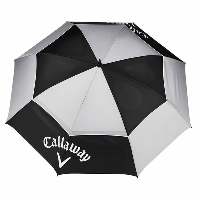 | Callaway Tour Authentic Double Canopy Golf Umbrella 68 Inch Diameter With Auto Opening Design The Tour Authentic Double Canopy Umbrella features a robust frame and tension cables for tour performance in any condition. – Large 68″ size diameter with auto opening design. – Double canopy design offering increased resistance to wind and inverting. – High grade fibreglass construction which combines strength with flexibility for storm safe protection. – Comfortable synthetic handle with non-slip grip in wet weather. – Internal mesh panels for additional stability and ventilation. – High quality, lightweight 100% waterproof fabric. – Callaway tour branding. |