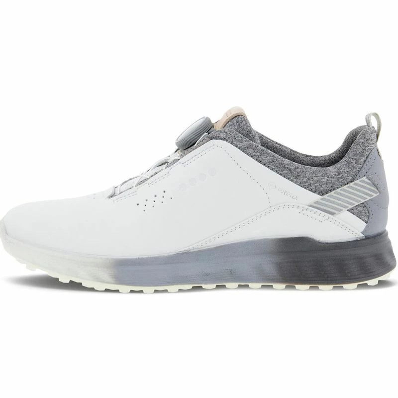 Blending performance construction with minimalist style, the waterproof ECCO women’s Golf S-Three BOA spikeless golf shoe offers premium comfort from the tee box to the clubhouse and beyond. This women’s hybrid golf shoe is enhanced with an E-DTS® outsole and GORE-TEX Technology for excellent traction and wet-weather protection. The latest ECCO ZONAL FLUIDFORMâ„¢ sole innovation focuses on three different areas to offer unparalleled comfort, stability and flexibility. Moreover, the Boa® Fit System allows you to effortlessly adjust the closure for a more secure fit. Whether you’re on the green or out and about, this shoe delivers equally on all day-wearability and style.