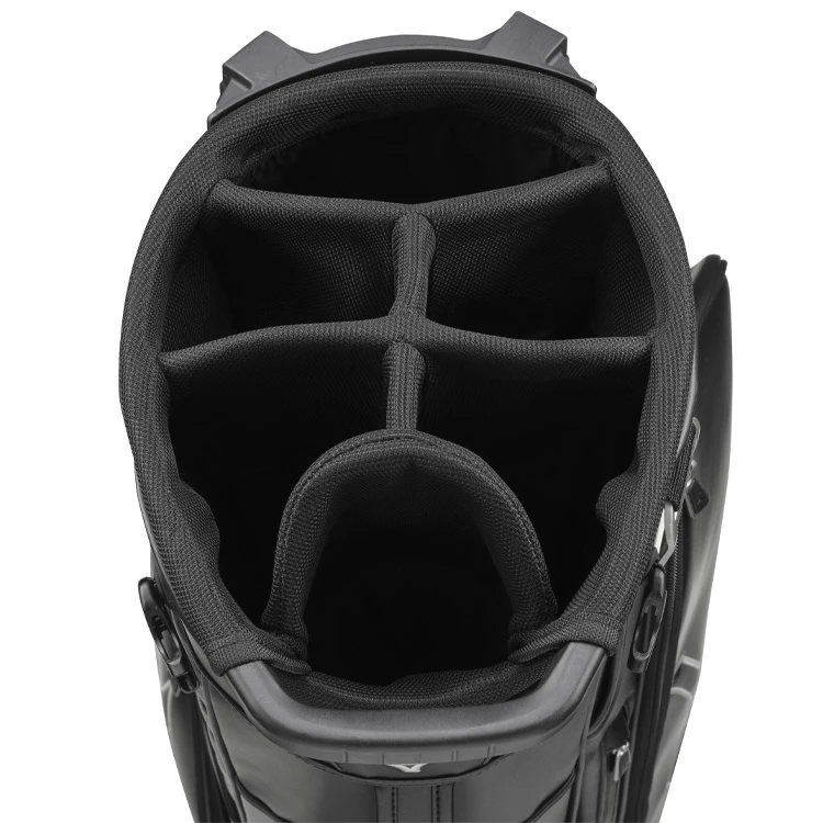 | Mizuno Tour Golf Stand Bag Hybrid Design With Premium Construction The Tour Stand Bag is Mizuno’s premium quality bag that engineered to flip between cart and carrying. Featuring an ergonomically designed 6 way top cuff with balance handle for easy lifting. There is storage with 8 pockets including in a single pelican pocket, ball pocket, valuables pocket, magnetic pocket, accessory pockets, and insulated drinks pouch. Finished with a stylish tour design, the Tour Stand Bag offers exceptional performance with leading stand bag features. |