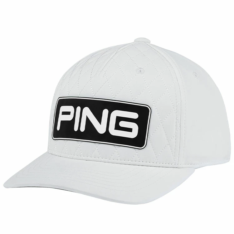 | Ping Heritage Tour Golf Cap Diamond Quilt Stitching With Adjustable Closure Pop this snapback on and people are going to notice, starting with the obvious difference – a stitched diamond quilt pattern on the crown. What they can’t see but you will appreciate is the comfort provided by Delta performance fabric that’s 87% polyester and 13% spandex ensuring durability and stretchability, with an adjustable snapback closure. – Stitched Diamond Quilt Front – Delta Performance Fabric – Adjustable Snapback Closure – One Size Fits Most – 87% Polyester, 13% Spandex |