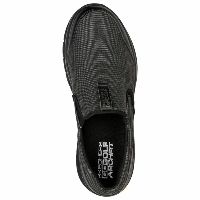 Walk the course in style and supportive comfort with Skechers Relaxed Fit®: GO GOLF Arch Fit Walk™. This spikeless water-repellent design features a slip-on waxed canvas and synthetic upper with a removable Arch Fit® insole, lightweight ULTRA GO® cushioning and a Goodyear® Performance Outsole.