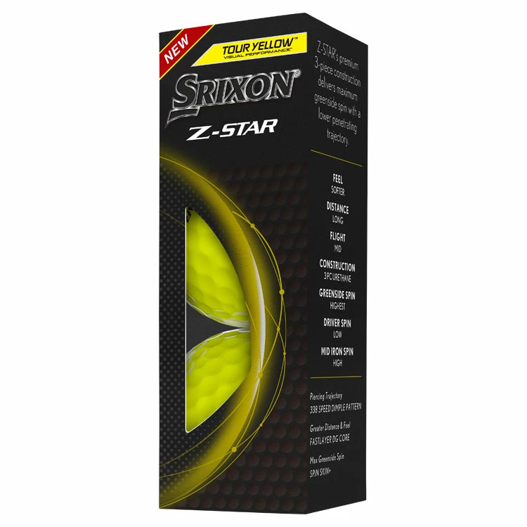 | Srixon Z Star Golf Balls Maximum Greenside Spin For More Control Maximize your greenside spin and enjoy ample distance performance, all with exceptionally soft feel. Choose Z-STAR for finesse around the greens and pinpoint approach shots are your keys to record low scores. Soft at its centre yet firm around its edge, new FastLayer Core gives you speed and great feel so you can play with confidence and big distance. A special heat treatment bakes speed into the outer portions of the core yet leaves the centre satisfyingly soft. And the transition from soft to firm happens gradually, giving you consistent performance shot-to-shot, club-to-club. Every Z-STAR Series golf ball features an extra thin, thermoplastic urethane cover. For even more spin and control, we add our Spin Skin coating. This additional layer of urethane is only a few microns thick, but it uses Slide-Ring Material (SeRM) to increase friction and maximize spin on chips and pitches. |