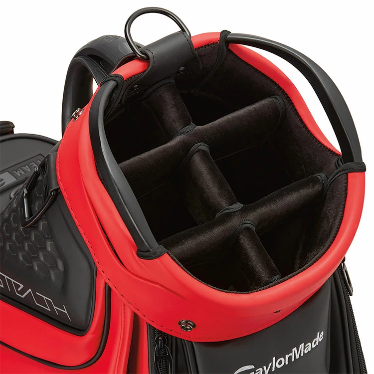 | TaylorMade 2022 Tour Golf Cart Bag Tour Branded With Premium Construction The new TaylorMade Tour Cart Bag is a tour inspired staff bag that incorporates the colours of the new STEALTH clubs. The Tour Cart Bag features an 11 inch 6 way divider top that provides excellent club organisation. Constructed from a brushed synthetic leather for a premium look and finish. There is a huge choice of 12 pockets that can all be accessed while riding on a trolley. Complete with a 3 point shoulder strap, the bag can also be carried like a conventional staff bag. The new Tour cart bag by TaylorMade continues their commitment to create the best performing golf products in the world that help players of all skill levels reach their potential. |