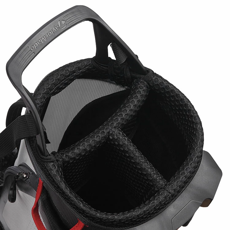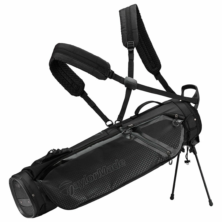 | TaylorMade Quiver Golf Pencil Bag Fantastic All Rounder With Great Features The TaylorMade Quiver Pencil bag is a great all round performer for summer, winter or holiday golf. If you prefer a super light carry bag that can fit a full set, this Quiver bag is your perfect partner. Featuring a 6.5 inch 3 way divider top and a padded double strap design. A new feature included is the micro stand system that prevents the top of the bag from coming into contact with the ground when not being carried. Complete with 4 pockets, this Quiver bag is a premium performer in the pencil bag category. |